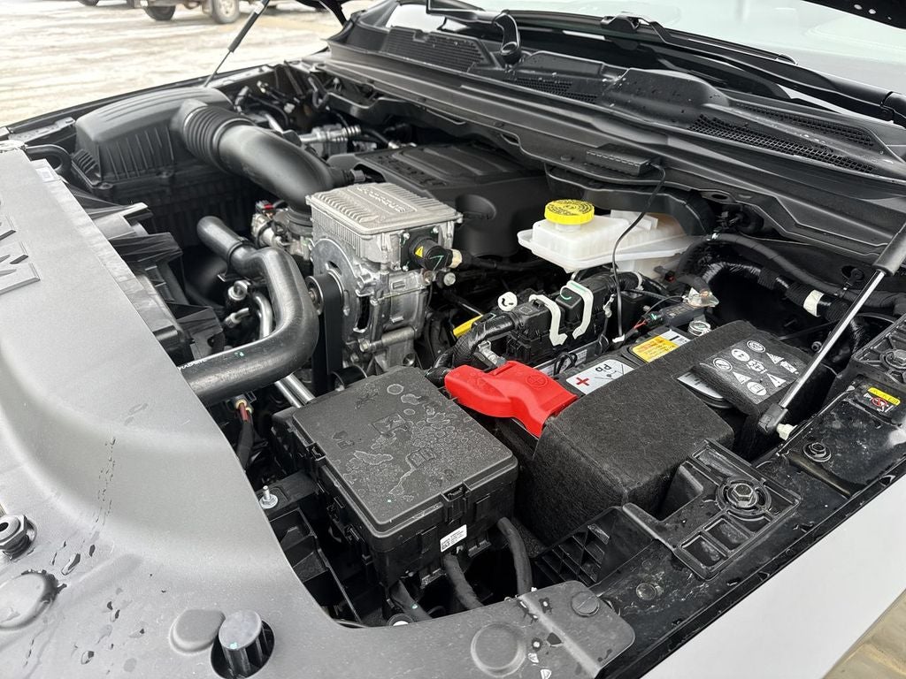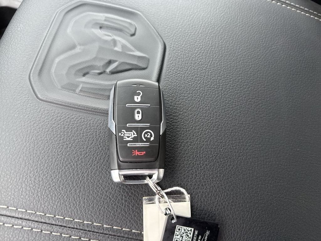 Quick Order Package 27H Laramie. Laramie Level 1 Equipment Group: Remote Tailgate Release; Rain Sensitive Windshield Wipers. Sport Appearance Package: 275/55R20 OWL All Season Tires; Accent Color Premium Power Mirrors; Exterior Mirrors with Supplemental Signals; Sport Performance Hood; Exterior Mirrors Courtesy Lamps; RAM Grille Badge - Chrome; Auto Power-Folding Mirrors; Exterior Mirrors with Heating Element; Auto Dim Exterior Driver Mirror; Exterior Mirrors with Memory; Black Interior Accents; Body Color Front Bumper; Convex Wide-Angle Exterior Mirror Insert; Body Color Rear Bumper with Step Pads; Bridgestone Brand Tires; Grille Surround 3 Body Color Tex 2 Black; Black Painted Exterior Mirrors Caps. Bed Utility Group: MOPAR Spray in Bedliner; Truck Bed Cargo Divider; MOPAR Deployable Bed Step; MOPAR 4 Adjustable Cargo Tie-Down Hooks; Exterior 115V AC Outlet. RamBox Cargo Management System. Wheel to Wheel Side Steps. Anti-Spin Differential Rear Axle. Trailer Brake Control. Diamond Black Crystal PC. MOPAR Front and Rear Rubber Floor Mats. 3.92 Rear Axle Ratio. Rear Wheelhouse Liners. **Equipment listed is based on original vehicle build and subject to change. Please confirm the accuracy of the included equipment by calling the dealer prior to purchase.**