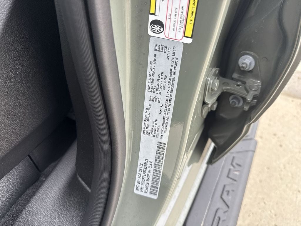 The Ram 1500 is pure luxury with a heated steering wheel. This 1/2 ton pickup's Forward Collision Warning system alerts the driver to potential front-end collisions, enhancing safety. This model has auto-adjust speed for safe following. The leather seats in this 1/2 ton pickup are a must for buyers looking for comfort, durability, and style. Start the Ram 1500 from inside with remote start. Apple CarPlay: Seamless smartphone integration for this Ram 1500 - stay connected and entertained on the go! Protect this vehicle from unwanted accidents with a cutting edge backup camera system. Enjoy your music even more with the premium sound system in this 2026 Ram 1500 . This Ram 1500 is equipped with the latest generation of XM/Sirius Radio. This 2026 Ram 1500 offers Android Auto for seamless smartphone integration. An off-road package is installed on this model so you are ready for your four-wheeling best. This Ram 1500 features a hands-free Bluetooth® phone system.