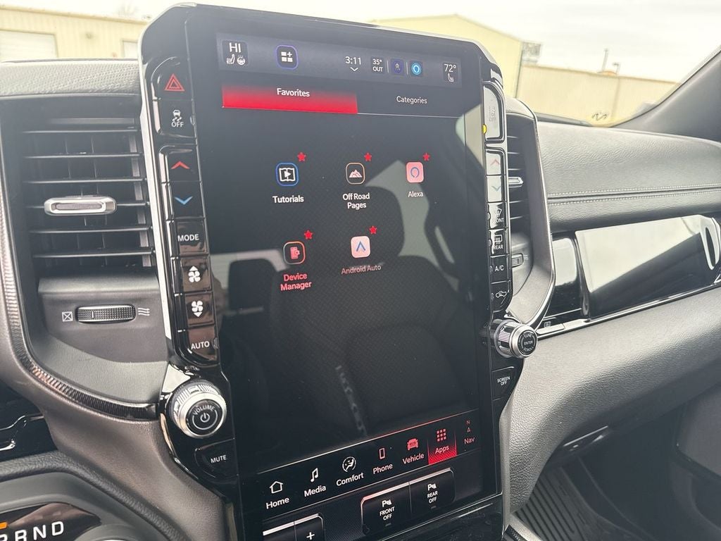 Bed Utility Group: MOPAR Spray in Bedliner; MOPAR Deployable Bed Step; MOPAR 4 Adjustable Cargo Tie-Down Hooks; Exterior 115V AC Outlet. Quick Order Package 21W Rebel. Rebel Level 2 Equipment Group: Google Android Auto; SiriusXM Radio Service; USB Host Flip; Rear Window Defroster; Rain Sensitive Windshield Wipers; Integrated Center Stack Radio; Power Adjustable Pedals with Memory; Front Passenger Interactive Display; Integrated Voice Command with Bluetooth®; Power 2-Way Passenger Lumbar Adjust; Connectivity - US/Canada; Auto Power-Folding Mirrors; GPS Navigation; 4G LTE Wi-Fi Hot Spot; 115V Auxiliary Rear Power Outlet; GPS Antenna Input; Media Hub with 2 Charge Only USBs; Exterior Mirrors with Heating Element; Proximity Approach/departure Lamps; Auto Dim Exterior Driver Mirror; SiriusXM with 360L; Accent Color Door Handles; Global Telematics Box Module; Connected Travel and Traffic Services; Heated Second Row Seats; Power Adjust 8-Way Front Passenger Seat; Security Alarm; Apple CarPlay; Black Painted Exterior Mirrors Caps; Off-Road Information Pages; Exterior Mirrors Approach Lamps; Disassociated Touchscreen Display; HD Radio; Smartphone as a Key Capable; 14.4" Touchscreen Display; Accent Color Premium Power Mirrors; Dual Wireless Charging Pad; Exterior Mirrors with Supplemental Signals; Exterior Mirrors Courtesy Lamps; Uconnect 5 Nav with 14.4" Display; Harman/kardon 19 Speaker Premium Sound; 2-Door Passive Entry. Front Door Locks; Accent Color Tailgate Handle; Exterior Mirrors with Memory; Driver Seat Memory; Power Tailgate; Convex Wide-Angle Exterior Mirror Insert; Radio/driver Seat/mirrors/pedals Memory. Lux Leather Trimmed Bucket Seats. MOPAR Black Tubular Side Steps. 33 Gallon Fuel Tank. Trailer Brake Control. **Equipment listed is based on original vehicle build and subject to change. Please confirm the accuracy of the included equipment by calling the dealer prior to purchase.**