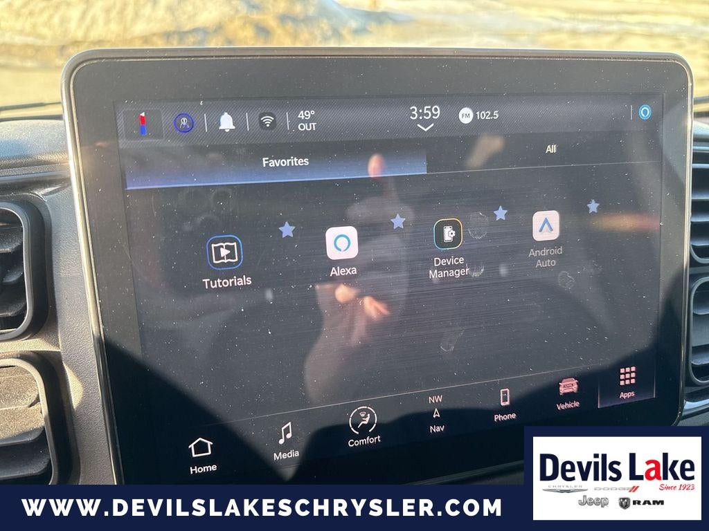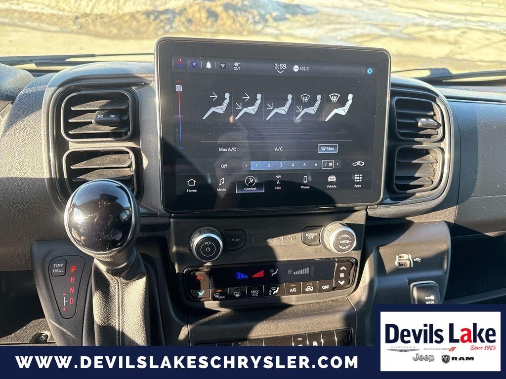 Premium Convenience Group: Uconnect 5 Nav with 10.1" Display Radio; Auto High Beam Headlamp Control; Cluster 7.0" TFT Color Display; Global Telematics Box Module; Rain Sensitive Windshield Wipers; Wireless Charging Pad; Automatic Headlamps; Traffic Sign Information. Interior LED Lighting Group: Ambient LED Interior Lighting; Rear Cargo LED Lamp. Quick Order Package 22A. MOPAR Side Wall Paneling U and L: Side Wall Paneling Lower. Premium Heavy Duty Suspension: Rear Heavy Duty Stabilizer Bar. Active Driving Assist System. Passenger Double Seat. 16" X 6.0" Black with Machined Face Aluminum Wheels. Adaptive Cruise Control with Stop and Go. Cargo Partition. Passenger Sliding Door with Window (polycarb). Rear Hinged Doors with Fixed Glass. MOPAR Rear Window Guards. MOPAR Cargo Compartment Floor Mat. 225/75R16C BSW All Season Tires. Leather Wrapped Steering Wheel. Side Wall Paneling Lower. Wide Power Heated Mirrors. Rear Cargo LED Lamp. Front Fog Lamps. Rear Window Defroster. Rear Heater - A/C Prep Package. Daytime Running Headlamps. **Equipment listed is based on original vehicle build and subject to change. Please confirm the accuracy of the included equipment by calling the dealer prior to purchase.**
