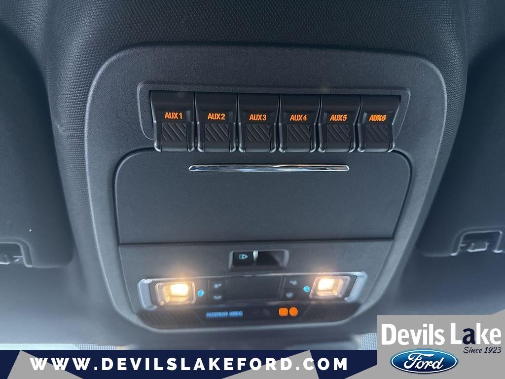 FX4 Off-Road Package: Transfer Case and Fuel Tank Skid Plates; Hill Descent Control; Off-Road Specifically Tuned Shock Absorbers; Unique FX4 Off-Road Box Decal. Order Code 723A: TorqShift 10-Speed Automatic Transmission; LT245/75Rx17E BSW A/S (6) Tires; 14. 000 Lb Payload Package GVWR; 17" Forged Polished Aluminum Wheels; Unique Platinum Leather 40/console/40 Seats; B&O Unleashed Sound System by Bang & Olufsen Radio. 35K 5th Wheel Hitch Kit. 5th Wheel/gooseneck Hitch Prep Package. Ford Pro Upfit Integration System. Limited Slip with 4.10 Axle Ratio. Vehicle Safe by Console Vault. Rapid-Heat Supplemental Cab Heater. Front Wheel Well Liners. Camper Package. All-Weather Floor Mats. **Equipment listed is based on original vehicle build and subject to change. Please confirm the accuracy of the included equipment by calling the dealer prior to purchase.**