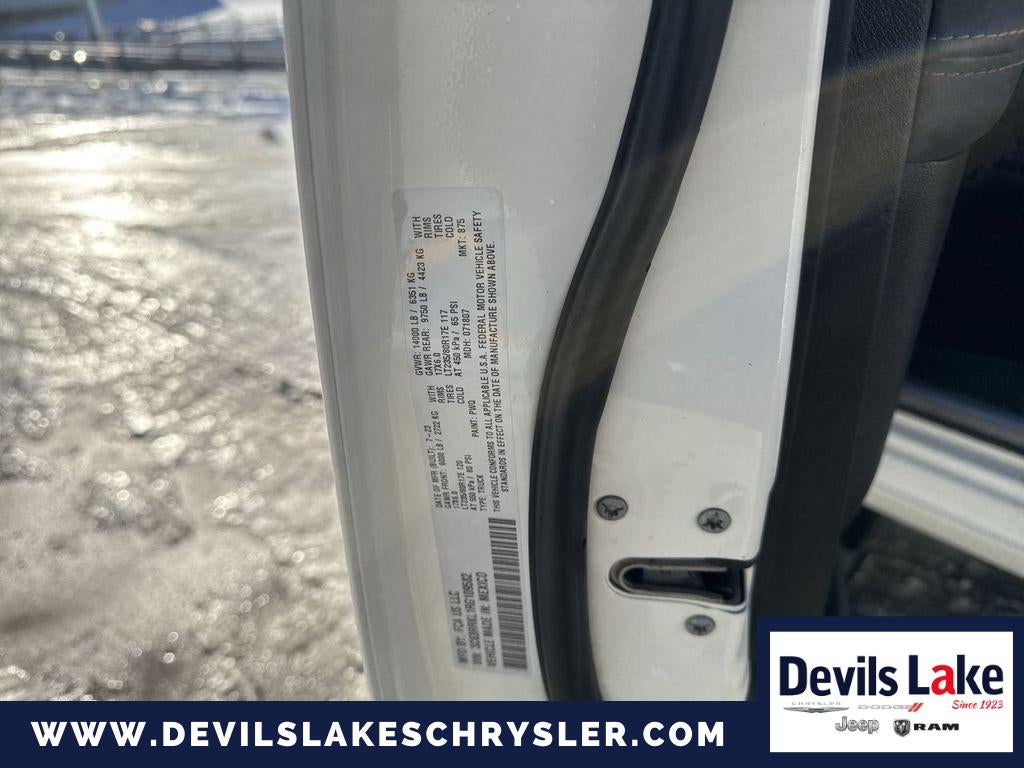 Quick Order Package 21K Longhorn. Longhorn Level 1 Equipment Group: Google Android Auto; Off-Road Information Pages; Selectable Tire Fill Alert; Trailer Tow Pages; Disassociated Touchscreen Display; Blind Spot and Cross Path Detection; HD Radio; Ramcharger Wireless Charging Pad; Uconnect 5 Navigation with 12.0" Display Radio; Integrated Voice Command with Bluetooth®; LED Bed Lighting; Connectivity - US/Canada; Power Deployable Running Boards; 12" Touchscreen Display; GPS Navigation; GPS Antenna Input; MOPAR Spray in Bedliner; 17 Speaker Harman/kardon Premium Sound; SiriusXM with 360L; Connected Travel and Traffic Services; Alexa Built-In; Apple CarPlay. Dual Rear Wheels: Clearance Lamps; LT235/80R17E BSW AS Tires; 17" Steel Spare Wheel; Box and Rear Fender Clearance Lamps; Center Hub; 6000# Front Axle with Hub Extension; 17" X 6.0" Polished Aluminum Wheels; 14. 000 lbs GVWR. Auto Level Rear Air Suspension. Blind Spot and Cross Path Detection. 5th Wheel/gooseneck Towing Prep Group. 50 Gallon Fuel Tank. Center Stop Lamp with Cargo View Camera. Pearl White. Pearl White. Clearance Lamps. **Equipment listed is based on original vehicle build and subject to change. Please confirm the accuracy of the included equipment by calling the dealer prior to purchase.**